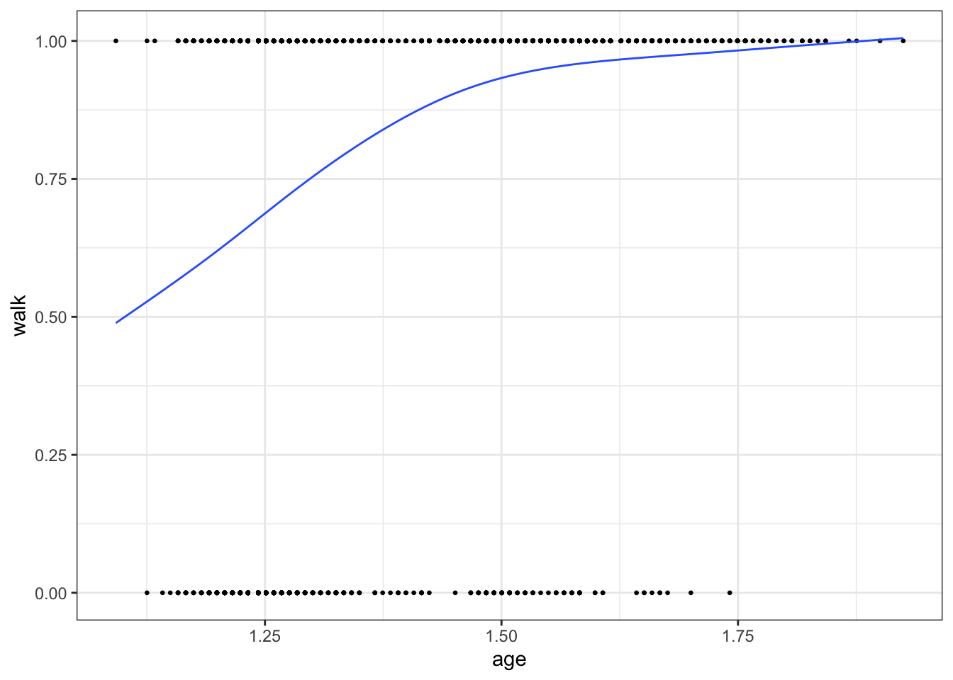 ggplot(na.omit(data), aes(age, walk)) +