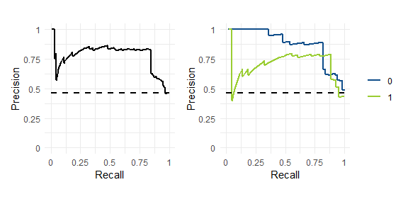 pr_plot(df, "pred", "lab", group = "sample(c(0, 1), n(), replace = TRUE)")